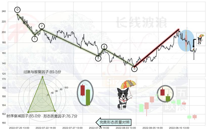 从2022-05-25 10:00至2022-08-12 14:00,共包含161个小时,阶段股价上涨18.49%,阶段股价变动位移路程比: 1 : 9