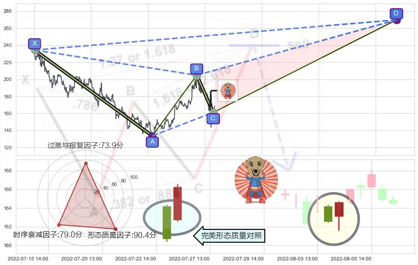 ➣ BC回撤位置在AB的61.5%,符合形态要求