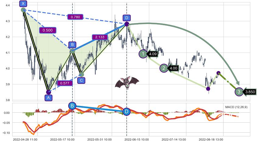 ➣ 已完成【蝙蝠】形态起点X: 04-22:13, 终点D: 06-07:10, 共140交易小时