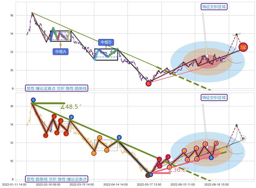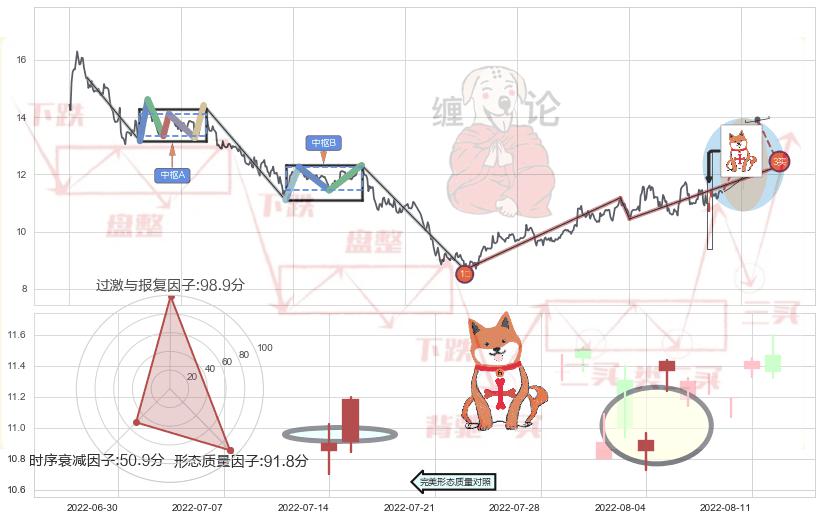 从2022-06-14 11:00至2022-08-12 14:00,共包含99个小时,阶段股价上涨10.41%,阶段股价变动位移路程比: 1 : 11