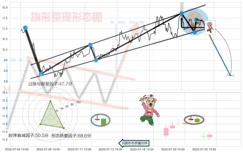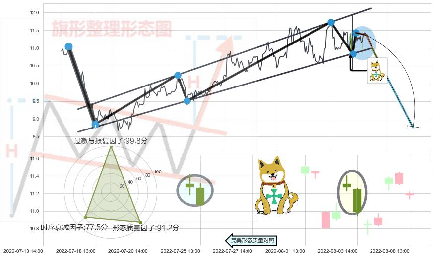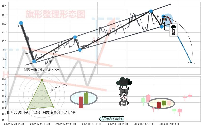 ➣ 下跌螺旋桨 + 升旗形临近支撑猜想转换阻力下跌信号叠加后【信号初始稳固度】中等,【看空】信号叠加【可信度影响中等】