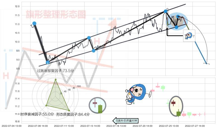 ➢ 🕰 价格走势在2022-07-22 14:00:00至2022-07-25 13:00:00期间形成下跌螺旋桨,残存影响值:-5.80