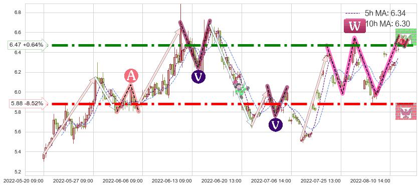 ♘ 阻力价格位6.47,可信任强度85.03%,距离最后交易2022-08-12 14:00形成的收盘价格6.43相差 +0.64%