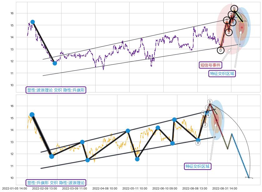 从2022-06-23 13:00至2022-06-30 14:00,共包含12个小时,阶段股价上涨3.81%,阶段股价变动位移路程比: 1 : 2