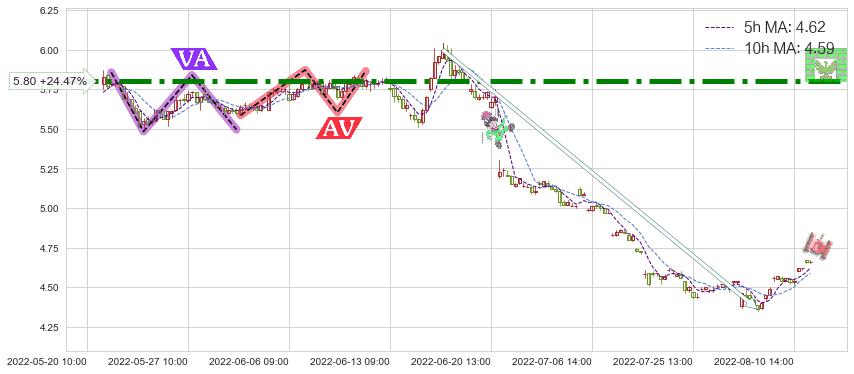 2022-05-23: 第一阻力位5.80强力阻拦了上升趋势,成功阻止了价格的继续上涨。