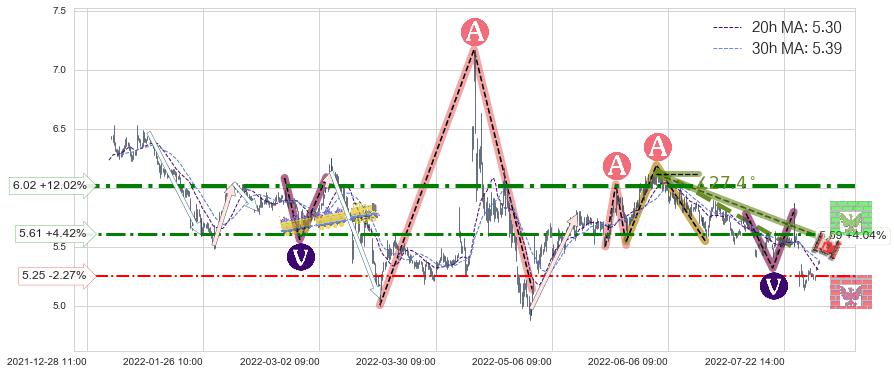 ♞ 20小时均线:5.30,30小时均线:5.39→ 快线<慢线