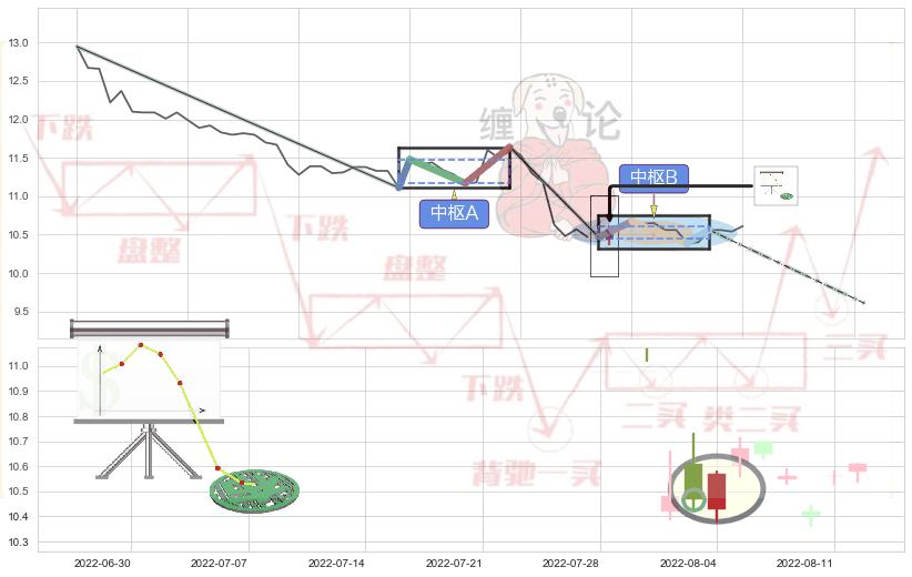 ➢ 缠论中枢点:猜想破位中枢B后持续下拉 → 下跌 → 破位中枢B支撑 → 持续趋势跟踪