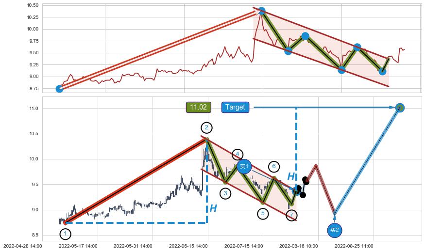 ➣ 最小中继整理涨幅→𝐇: 1.6500 (𝐇旗杆的长度:旗杆起点→顶点)