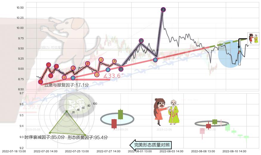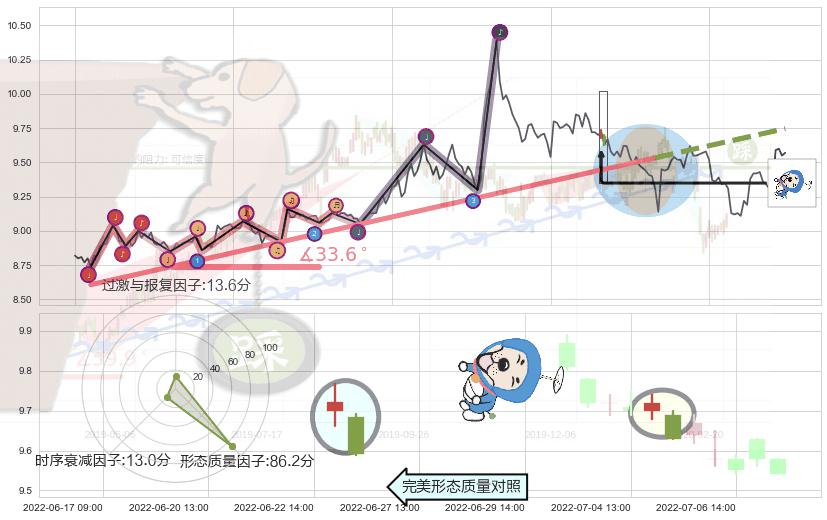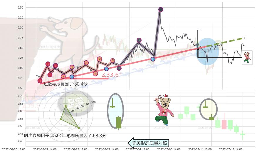 ➢ 2022-05-10 09:00-2022-07-15 13:00上升趋势存在反转[风险],其原上升趋势的支撑位(9.75)已破位[强阻力信号],原上升趋势角度: 33.6˚