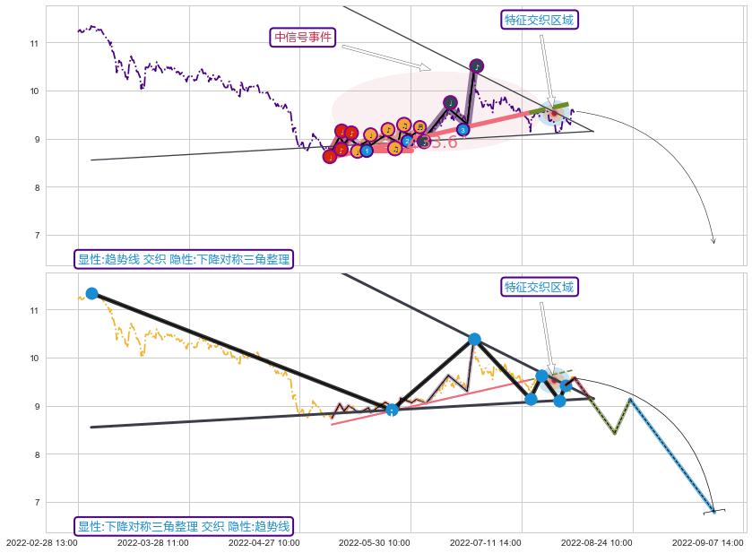 ➢ 趋势线属【中级别信号事件】下降对称三角整理属【长级别信号事件】中长周期组合信号事件,中长事件长度比44.29%