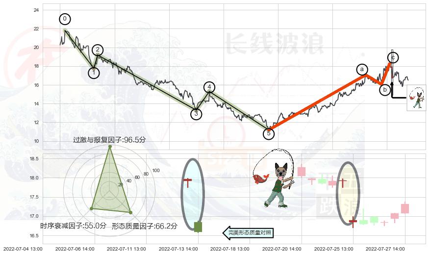 从2022-07-11 13:00至2022-08-12 14:00,共包含50个小时,阶段股价上涨3.77%,阶段股价变动位移路程比: 1 : 17