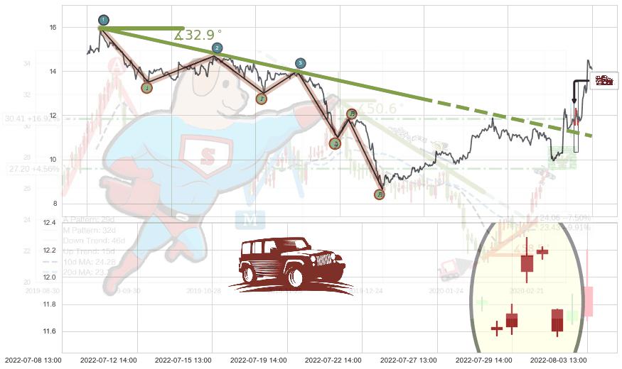 ♘ 阻力价格位14.46,可信任强度87.54%,距离最后交易2022-08-12 14:00形成的收盘价格14.09相差 +2.64%
