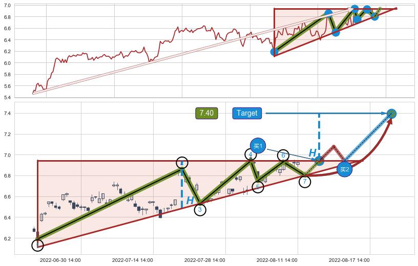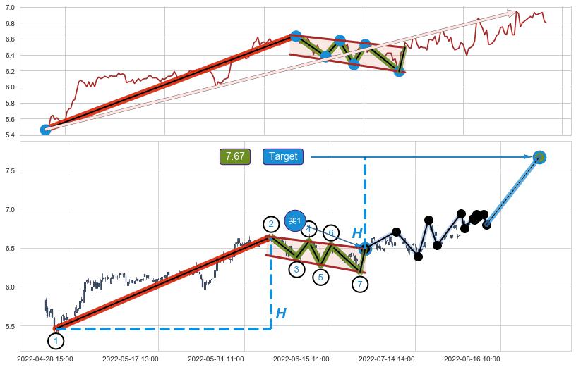 ➣ 收盘价(07-21:14: 6.73 )→回踩→第二根k线低点(07-20:13: 6.80 )