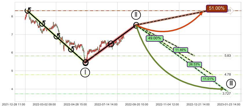 ➢ 高概率大级别循环下跌浪被破坏,反转向上(突破5浪起点)概率51.00%