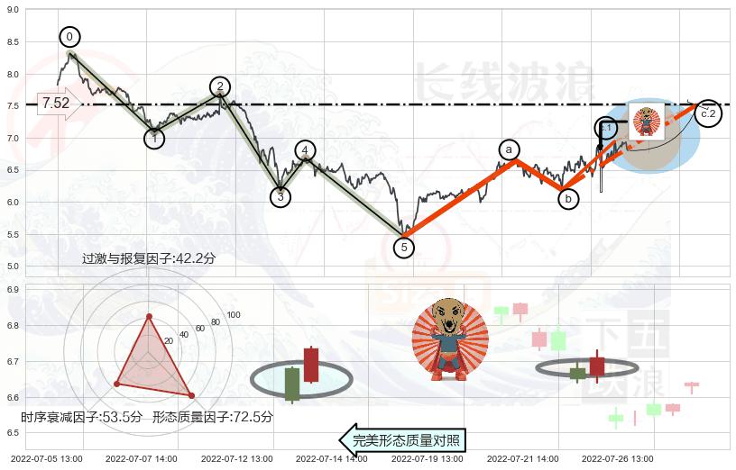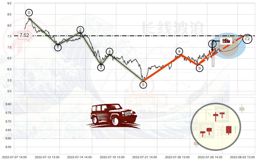 ➣ c.1: 当前c浪回调位置(08-03:13, 6.94),仍然有回调空间