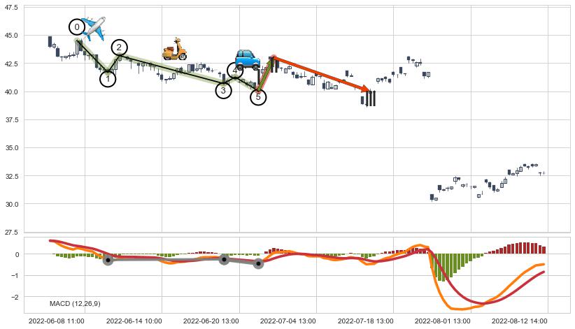 从2022-08-02 13:00至2022-08-12 14:00,共包含18个小时,阶段股价上涨5.94%,阶段股价变动位移路程比: 1 : 2