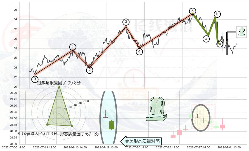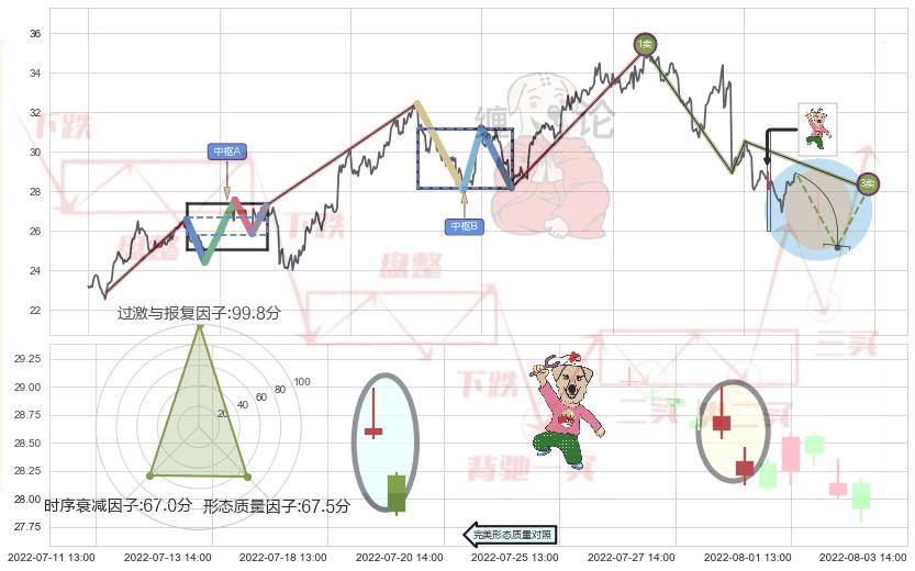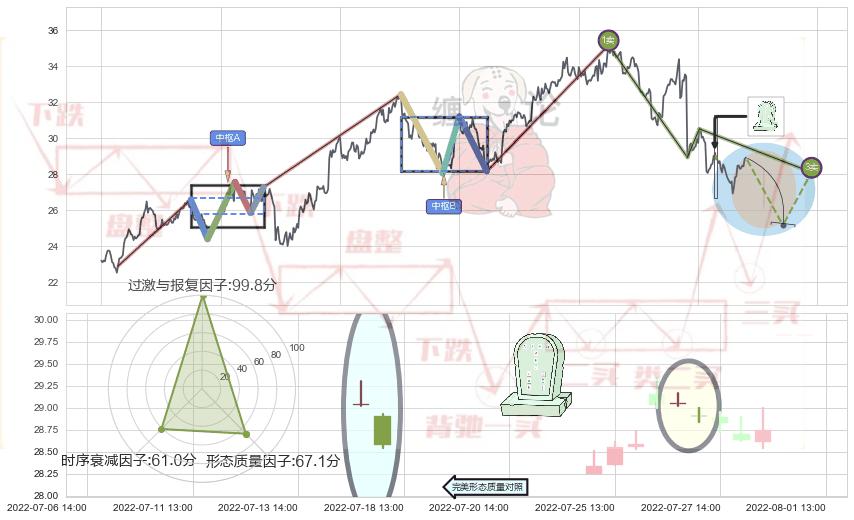 ➢ 🕰 价格走势在2022-07-28 14:00:00至2022-07-29 13:00:00期间形成射击之星形态,残存影响值:-6.39