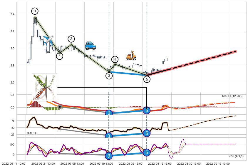 ➢ 上涨螺旋桨形态 + 波浪理论下跌浪:浪5反弹拐点信号叠加后【反向回撤率】极低,【看多】信号叠加【存续影响极大】