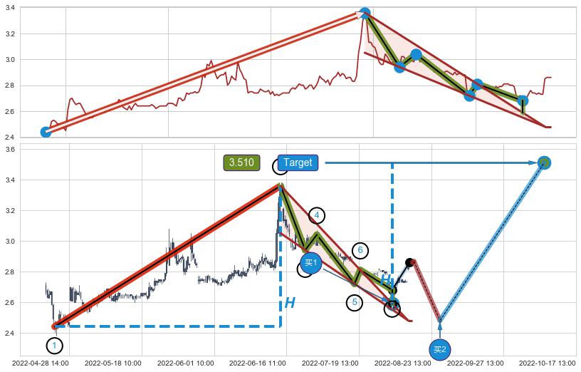 ➢ 【买1】: 激进型 买点 →(08-03:14: 2.590 )形成突破降🚩楔型【整理】形态