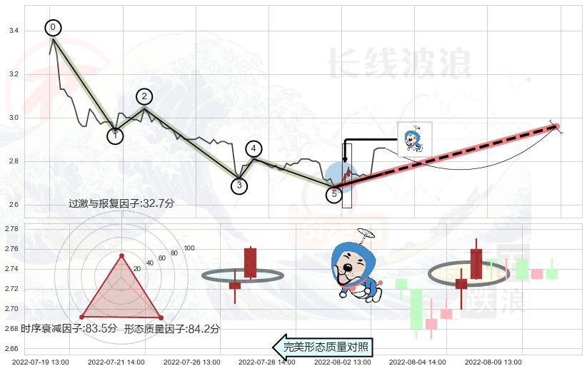 ➢ 🕰 价格走势在2022-08-05 13:00:00至2022-08-05 14:00:00期间形成上涨螺旋桨形态,残存影响值:5.27
