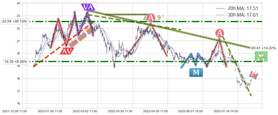 ♞ 20小时均线:17.51,30小时均线:17.61→ 快线<慢线