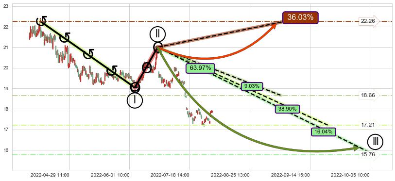 ➣ 大趋势循环浪继续向下概率63.97%