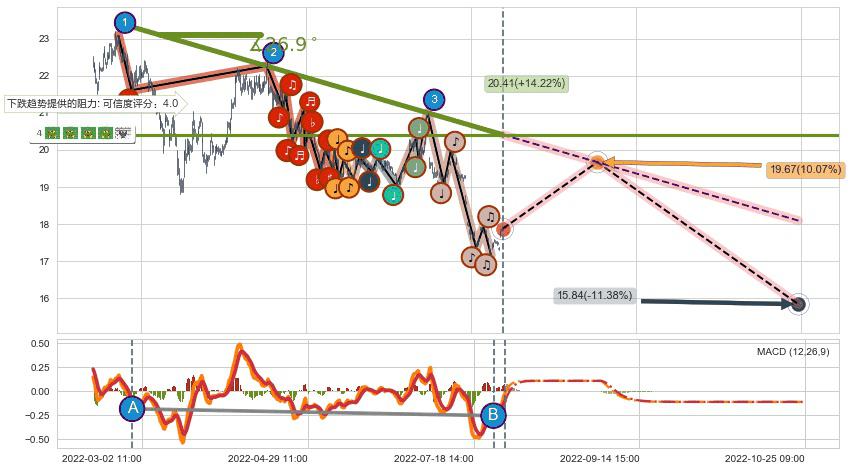 ♘ 阻力价格位19.35,可信任强度82.59%,距离最后交易2022-08-12 14:00形成的收盘价格17.87相差 +8.26%