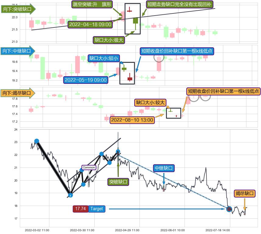 ➢ 2022-07-29 13:00形成:向下跳空【竭尽】缺口