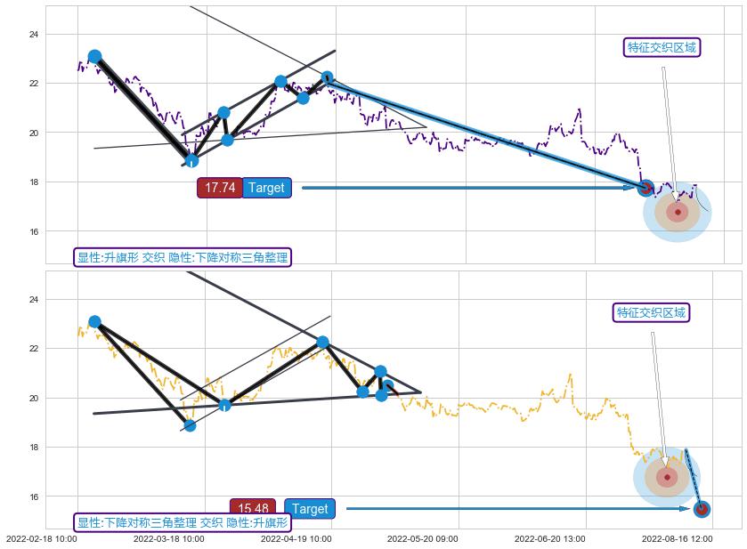 ➣ 高位并排阳线 + 下降对称三角整理临近target支撑拐点上涨信号叠加后【目标达成率】中等,【看多】信号叠加【存续影响中等】