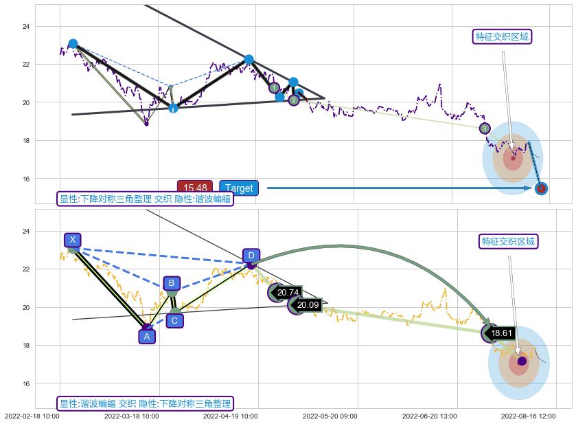 ➢ 下降对称三角整理与谐波蝙蝠信号事件周期长度级别相同,同周期信号事件
