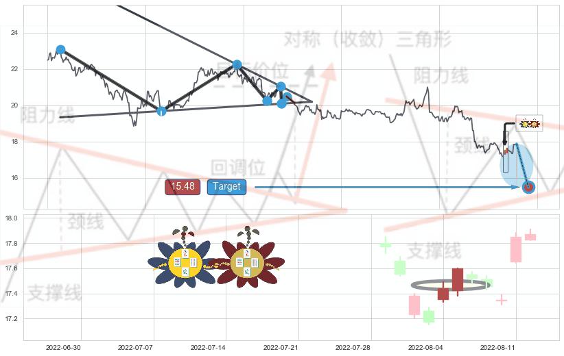 ➣ 【已确认突破】最后价格:17.87与最小【整理】第一目标价格→(08-16:12: 15.48 )相较: 下跌空间【中等】