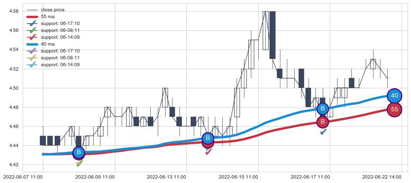 ➢ 最优均线组合共正确确认支撑阻力信号12处,正确确认率 85.71%