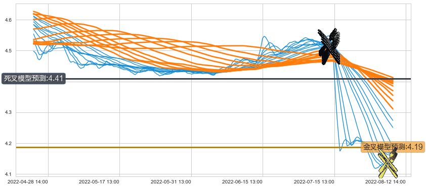 ➣ 34小时均线于(07-12 14:00: 4.53)形成【死叉】基于【死叉历史模型】预测死叉后最低波谷价格: 4.45, 死叉后最低价格4.10,已经下跌超出预测最低波谷价格, 预期反弹