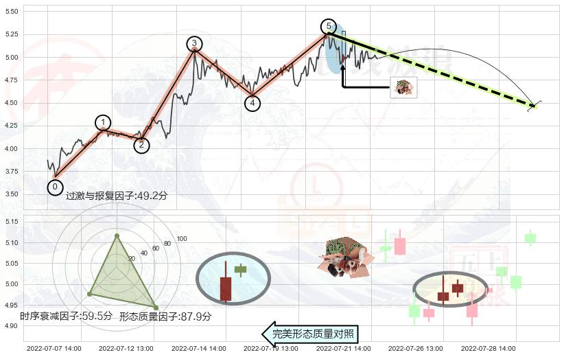 ➢ 🕰 价格走势在2022-07-26 13:00:00至2022-07-26 14:00:00期间形成顶部尽头线(下山虎),残存影响值:-5.38