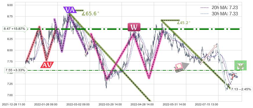 ♞ 20小时均线:7.23,30小时均线:7.33→ 快线<慢线