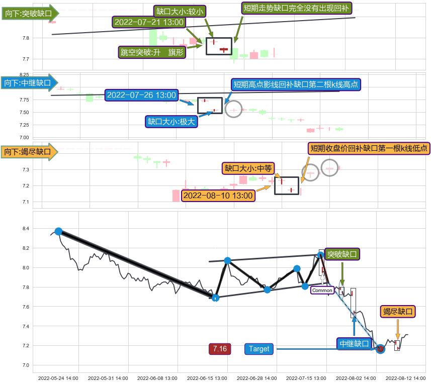 ➢ 2022-08-10 13:00形成:向下跳空【竭尽】缺口