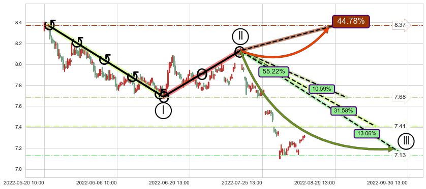 2022-06-08: 第一阻力位7.75有效抑制了下跌浪,成功阻止了价格的继续下跌。