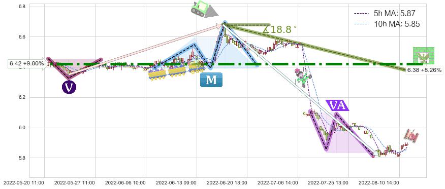 2022-05-31: 第一阻力位6.42强力阻拦了上升趋势,成功阻止了价格的继续上涨。