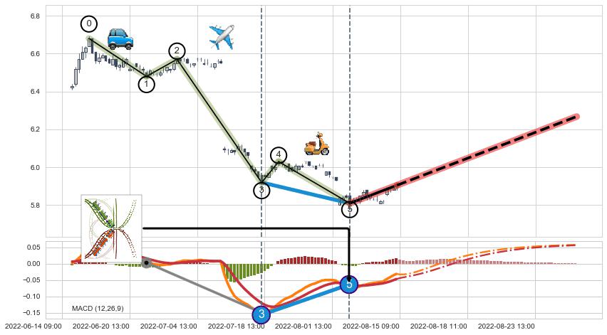 ➣ 缠论买卖点:猜想2买持续蓄力上涨至3买 → 上涨 → 机会信号 → 小趋势跟踪