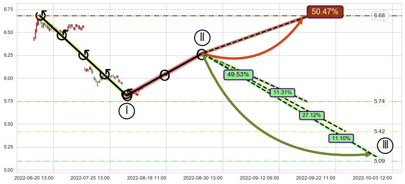 2022-06-14: 第一阻力位6.42有效抑制了下跌浪,成功阻止了价格的继续下跌。