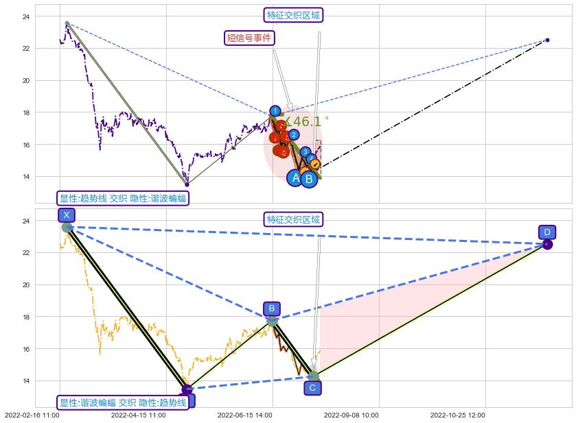 ➢ 趋势线属【短级别信号事件】谐波蝙蝠属【长级别信号事件】长短周期组合信号事件, 短长事件长度比16.74%