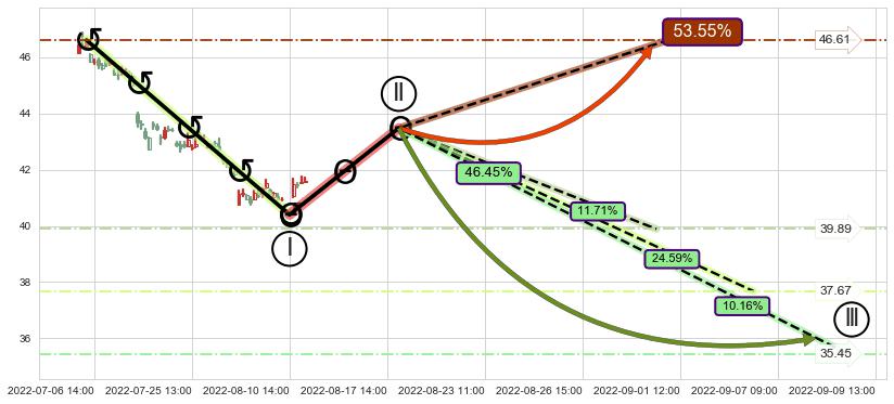 ➢ 循环浪继续向下【最低】位置(09-09:13, 35.45),匹配聚类样本比例21.86%, 可能性概率10.16%