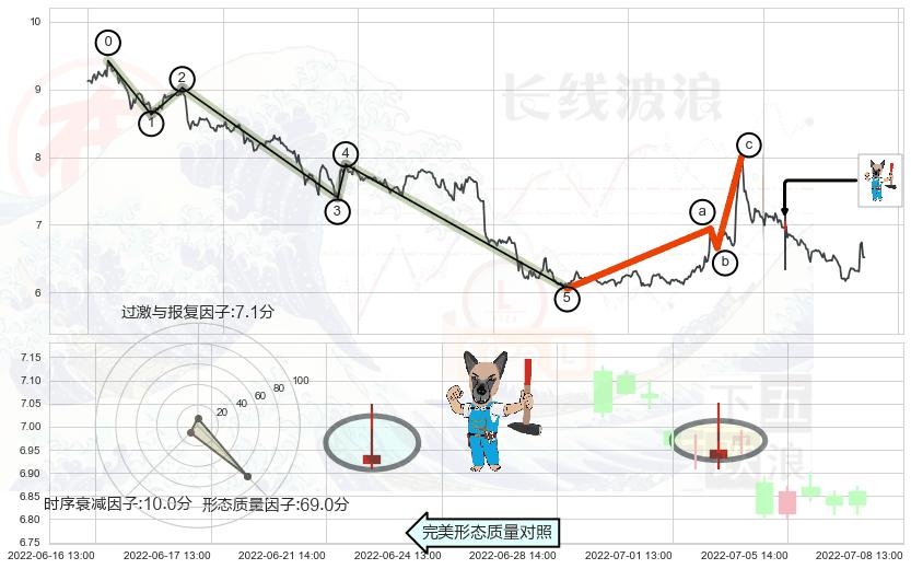 ➢ 🕰 价格走势在2022-07-06 13:00:00至2022-07-08 13:00:00期间形成高档五阴线,残存影响值:-1.46