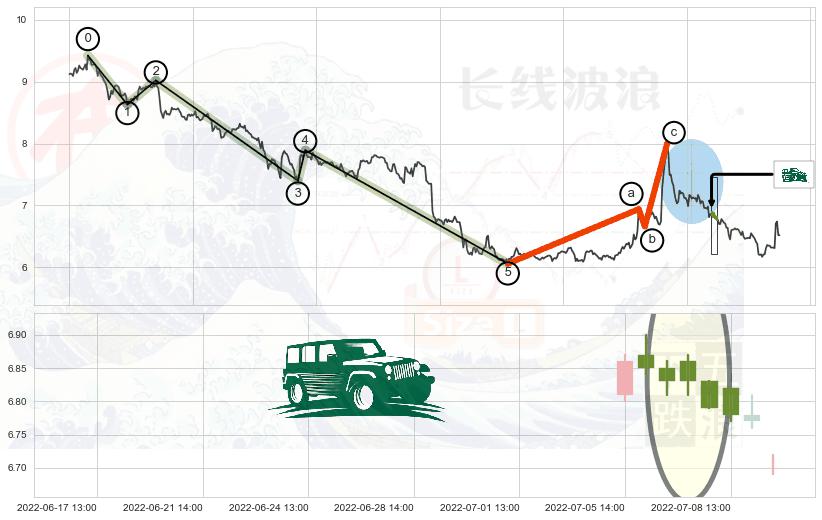 ➣ 调整浪已超过预测的c点位置,后续大趋势循环浪继续下跌概率65.42%,谨慎做多