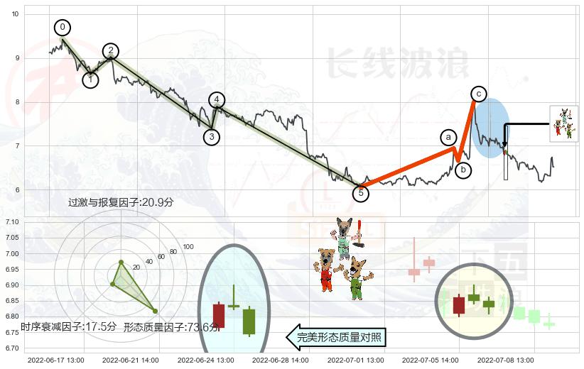 ➣ 下跌孤独十字星 + 波浪理论c点反弹终止反转下跌信号叠加后【信号初始稳固度】中等,【看空】信号叠加【可信度影响中等】