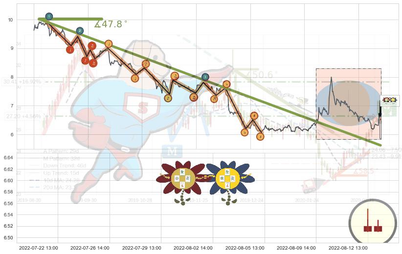 ♘ 阻力价格位7.89,可信任强度69.76%,距离最后交易2022-08-12 14:00形成的收盘价格6.52相差 +20.98%