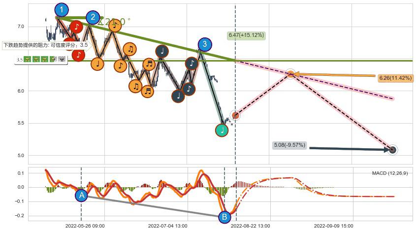 ♘ 阻力价格位6.07,可信任强度65.78%,距离最后交易2022-08-12 14:00形成的收盘价格5.62相差 +8.08%