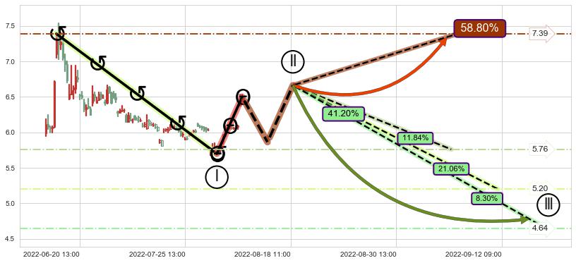 ♘ 支撑价格位5.19,可信任强度84.28%,距离最后交易2022-08-12 14:00形成的收盘价格6.39相差 -18.73%