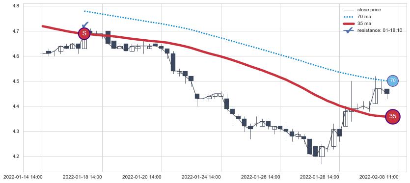 ➣ 80小时均线于(08-10 14:00: 4.33)形成【金叉】基于【金叉历史模型】预测金叉后最高波峰价格: 4.56, 金叉后最高价格4.35,尚未达到预测最高波峰价格, 预期继续上涨