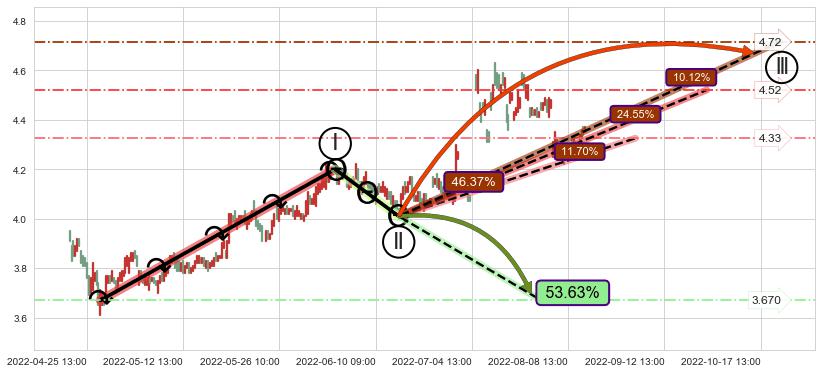 ➢ 循环浪继续向上【最低】位置(08-31:14, 4.33),匹配聚类样本比例25.24%, 可能性概率11.70%